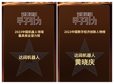 在2023甲子引力年終盛典上,達闥機器人榮登甲子20榜單之「2023中國機器人領域最具商業潛力榜」。同時,公司創始人、董事長兼CEO黃曉慶先生被授予光年20榜單「2023中國數字經濟創新人物」稱號。